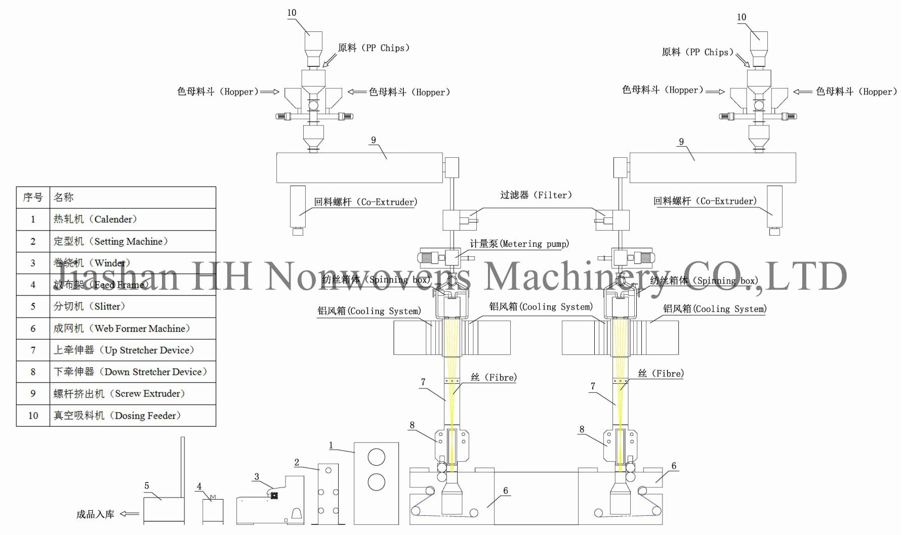 CNCを使用してPPスパンボンド不織布機の主要部品を製造します。マシンローラーはダイナミックバランスマシンを使用してローラーを製造し、機械を高速で実行します。メインモーターはシーメンスモーターを使用し、シーメンスまたはABBドライバーを使用して機械全体を制御します。
